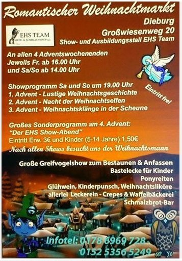 Die Sängerinnen von chorfavor sind beim Weihnachtsmarkt am Reitstall auf der Großen Wiese eingeladen worden, Weihnachtslieder gegen 19:00 Uhr darzubieten. Das Konzert von chorfavor im vergangenen Oktober ist noch in guter Erinnerung.