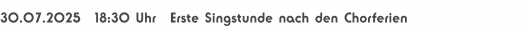 30.07.2025 18:30 Uhr Erste Singstunde nach den Chorferien