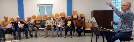 Unser Dirigent, Andreas Mohrhard, stimmt Helmuts Lieblingslied an: Bajazzo.