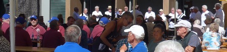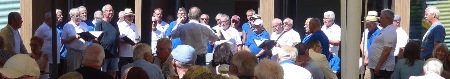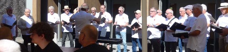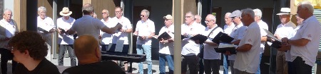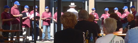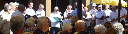 Männersänger sind eingetroffen und lauschen den Gesangsbeiträgen.