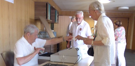 Auch Manfred setzt sich als Helfer beim Essenmarkenverkauf ein.