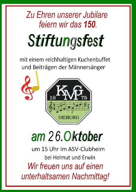 Die Ehrungen, d.h. die Urkunden werden den abwesenden Jubilaren zu Hause zugestellt.