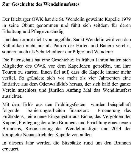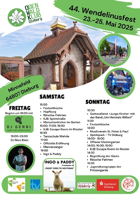 Am Samstag, 24.05.2025, eröffnet der OWK-Dieburg um 17:00 Uhr das Wendelinusfest. Der Eröffnungsansprache folgen die Männersänger mit Frühlingsliedern...