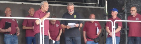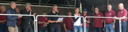 Als drittes Lied folgt: - Ein Bier, das macht den Durst erst schön. Als Dank für die Gesangsvorträge gönnen sich die Männer ein Bier vom Getränkestand.
