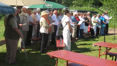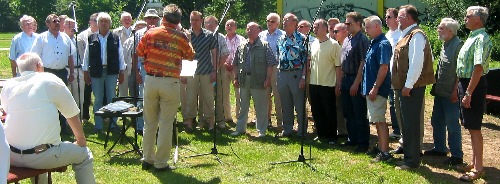Während sich die Nachmittagsgäste zum Kaffeeplausch unter strahlend blauem Himmel einfanden, unterhielten die Sängerlust (Leitung: Klaus Vetter) sowie die Chöre des KMGV mit schwungvollem Gesang. |