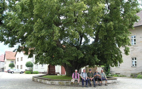 Unter der gewaltigen Linde von Untersteinbach - ein kurzes Durchatmen vor dem Mittagessen. |