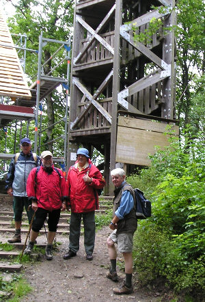 Gegen Mittag war der 489 m hohe Zabelstein erreicht. Natürlich wurde der 18,8 m hohe Turm bestiegen, der einen herrlichen Rundblick bot. |