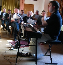 Die Männersänger in der Pause im Sonnenschein. |