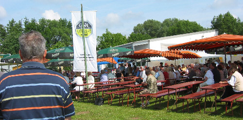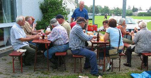 Das Abbau-Team beim Frühstück kann auf ein erfolgreiches Waldfest bei strahlendem Sonnenschein zurückblicken. |