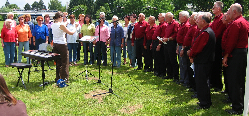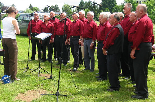 Der Männerchor des MGV 1842 e.V. Groß-Umstadt singt mit Dirigentin Beate Leisner. |