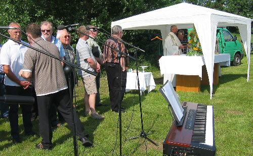 Das Waldfest war bei bestem Wetter auch bestens besucht! Es beginnt wie gewohnt mit dem Gottesdienst. Die Messe wird von Pater Andreas zelebriert. |