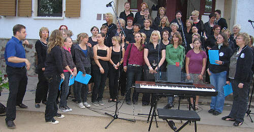 Der Frauenchor, VivaDiva, nach einem gelungenen Liedvortrag. |