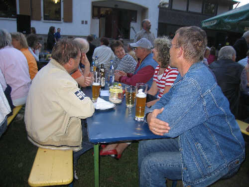 Nachdem die Stadt Dieburg den Auftritt des Jugend- und Frauenchors zur "Nacht in blau" abgesagt hatte, weil der vorgesehene Auftrittsort, der Platz hinter dem neuen Fechenbach'schen Museum wegen der Bauarbeiten zum Parkplatzbau abgesperrt war, überlegten sich die Sängerinnen, ob es nicht doch noch eine Möglichkeit gäbe, das erworbene Liedrepertoir öffentlich aufzuführen. Da kam die Idee auf: "wir machen ein Mondscheinkonzert auf der Moret". Und hinzugefügt wurde, jawohl ein Benefizkonzert zur Unterstützung der Wasserleitungs-Finanzierung. Dieser Vorschlag zündete unter den Sängerinnen und wurde auch bei den Naturfreunden mit Begeisterung aufgenommen. |