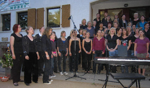 Nachdem sich die Naturfreunde für das überwältigende Mondscheinkonzert des KMGV bedankt hatten, ergriff auch Monika Schramm das Wort und bedankte sich beim Publikum für die Geldspenden zum Bau der Wasserleitung und versprach nach den Ferien mit den Sängerinnen zum Frühstück auf die Moret zu kommen und den Erlös der Sammlung für den Bau der Wasserleitung zu übergeben. |