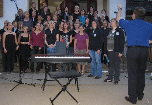 Die Plazierung der Sängerinnen von GenerationBetwee und VivaDiva auf der Treppe ergab ein gutes Auftrittsbild und einen hervorragenden Sound. |