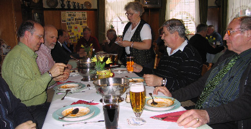 Die Menüs in der Krone waren wieder hervorragend, Bernhard sammelt hier Suppenterrinen für die Suppenfreunde an seinem Tisch. |