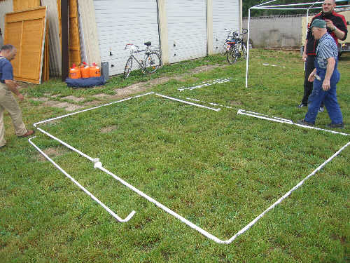 Das Zeltaufbauteam war der Meinung, zuerst steckt man am Boden die Grundelemente zusammen. |