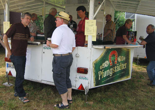 Der Getränkeausschank am Bierwagen ist eröffnet, Dieter begrüßt den Bürgermeister. |