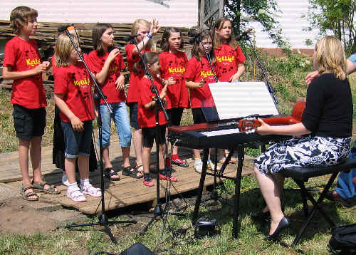 Der Kinderchor des KMGV, die Kellies, beim freien Liedvortrag mit Gabi Litta. |