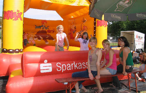 Der Jugendchor betreute die Kinder, hier an der Hüpfburg. |