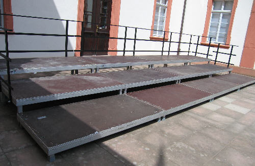 Die Bühne passte hervorragend für die Chöre. Der Standplatz war für die Akustik ideal. Die Sänger/innen waren hier gegen kalte Zugluft geschützt. |