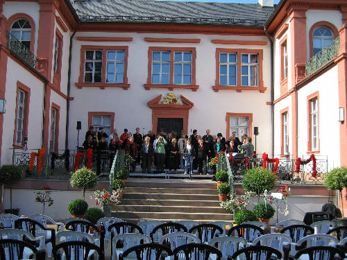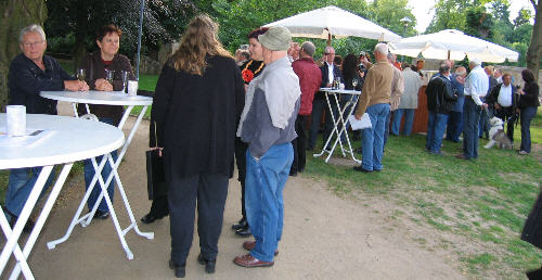 Nebenan war die Bar aufgebaut und kredenzte zu Bretzeln und Käsestangen hervorragende Weine und Sekt; dieses Angebot wurde von den eintreffenden Besuchern rege angenommen. |