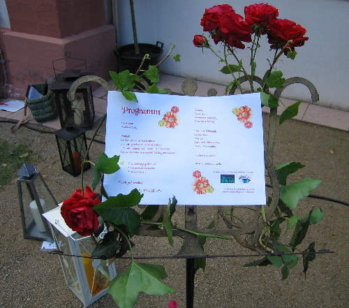 Ein Detail der liebevollen Dekoration. Das Ambiente passte, das Publikum saß mitten zwischen den Blumenrabatten. |