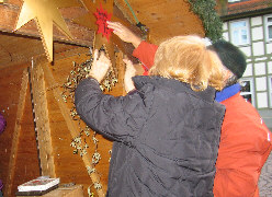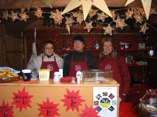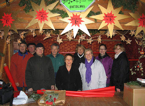 Das Aufbauteam Wolfgang & Wolfgang, Gerd, Manfred, Monika, Brigitte, Ines, Bettina und Anette schafft die Dekoration im Nu. Unser Marktstand ist wieder der Schönste! |