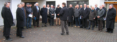 Die Männersänger singen sich im Wirtschaftshof der Friedhofskapelle ein. |