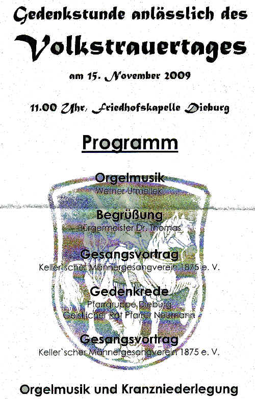 Die Stadt Dieburg hatte den KMGV zur Mitgestaltung der Gedenkfeier zum Volkstrauertag eingeladen. |