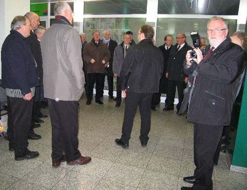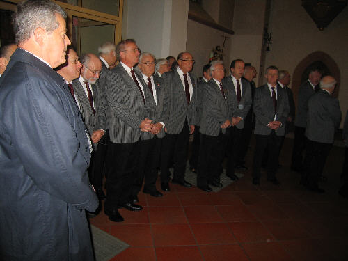 Die Männersänger singen für ihr langjähriges Mitglied und zur Feier der Diamantenen Hochzeit "Die Himmel erzählen die Ehre Gottes". Aufgrund der nachfolgenden Gedenkfeier mussten die Sänger den Gottesdienst vorzeitig verlassen. |