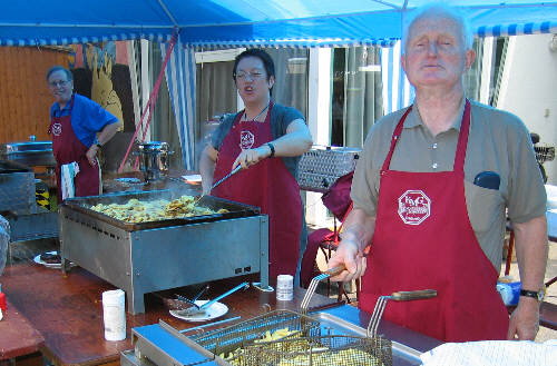 Beste Stimmung herrscht in der Grillküche, Philip sorgt dafür. |
