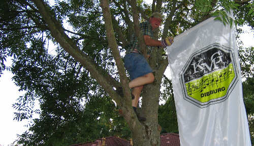 Das Waldfest neigt sich dem Ende zu; Paul holt hier symbolisch die Fahne des KMGV ein. |