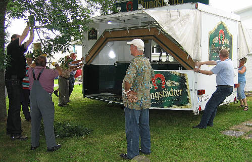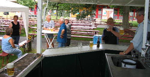 Bereits Freitags waren das Geschirrspülmobil und die Getränkehütte von der Stadt Dieburg angeliefert und aufgebaut worden, sowie der Bauwagen mit den diversen Utensilien, nach der Reifenreparatur, herangebracht worden. |