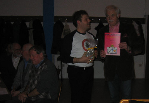 Für die Männersänger bedankte sich Franz Pollak mit der Überreichung eines vergoldeten Hufeisens als Glücksbringer. Ralph Scheiner bedankte sich mit der Überreichung von Chornoten. |