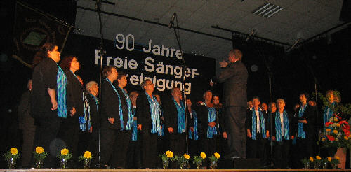 Zum ersten Autritt mit ihrem neuen Dirigenten, Dirk Schneider, kam es beim Jubiläumsliederabend der Freien Sängervereinigung 1920 e.V. zum 90 jährigen Bestehen des Gesangsvereins.