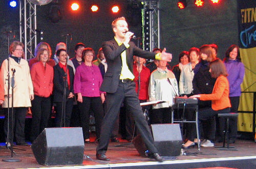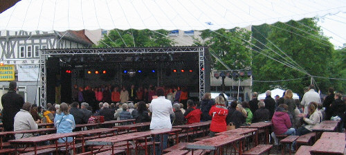 Am Sonntag, 9.05.2010, war um 11:00 Uhr das Matineesingen beim Maimarkt auf dem Marktplatz in Dieburg auf der Bühne unter dem riesigen Marktschirm angesagt.