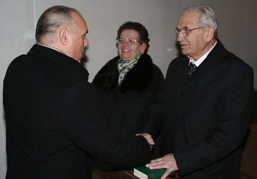 Der 1. Vorsitzende, Dieter Mann, gratuliert dem Jubelpaar Erna und Heinrich Sattig zur Diamantenen Hochzeit. |