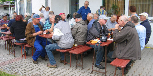 Endlich ist Frühstück angesagt, wie immer von Helmut vorbereitet mit Worscht und Weck. |