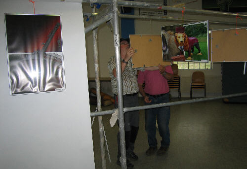 Hans bereitet eine Ausstellung seiner Collagen vor, eine Programmbereicherung für das Waldfest. |