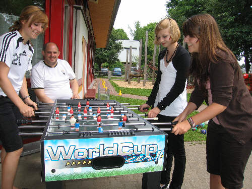 Nach dem Aufräumen und Abbauen ist das fiebern auf das erste WM-Fußballspiel der deutschen Mannschaft beendet und das Public Viewing-Erlebnis läuft im ASV. Die deutsche Mannschaft begeistert und siegt verdient mit 4:0 über die Mannschaft von Australien. |