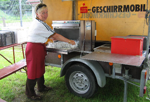 Anita übernimmt die letzte Arbeitsschicht am Spülmobil. |