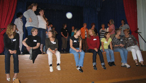 Hier wird das Tableau "Am Galgenberg - Volksfest" mit den Darstellern aus dem "Volk" und den untergemischten "Räubern" entwickelt. |