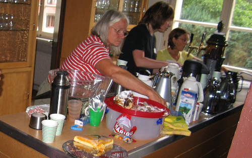 Für die Pause stehen Kaffee und Kuchen sowie andere Getränke usw. bereit. |