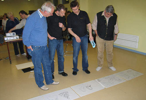 Am Freitagabend kamen die Räuber, Räuberinnen und das Volk zur Chorprobe des musikalischen Ablaufs der vorliegenden Songs mit Ralph Scheiner in die Geiersbergschule nach Groß-Umstadt. Am Samstag trainierte Bernd Waldmann mit den Solisten den Schauspielerischen Ablauf. Am Sonntag wurden schließlich Stellproben gefolgt vom gesamten schauspielerischen und chorischen Ablauf geprobt. Zum Schluß stellte Ralf Logemann ein durchgängiges Konzept für die Bühnenbilder vor, das auch Auswirkungen auf die Kostümkonzepte hat. |