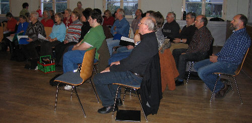 Zum 5. Probenwochenende trafen sich am Samstag nachmittag die Sängerinnen und Sänger des KMGV und der Musical Factory im Saalbau Richen. Es wurden alle Songs von Räubern und Volk geprobt : |