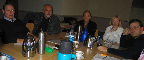 Sonntag morgen, Projektbesprechung mit Bernd, Béla, Wolfgang, Brigitte, Ralph, Gerlinde, Bernhard, Monika und Gerd. |