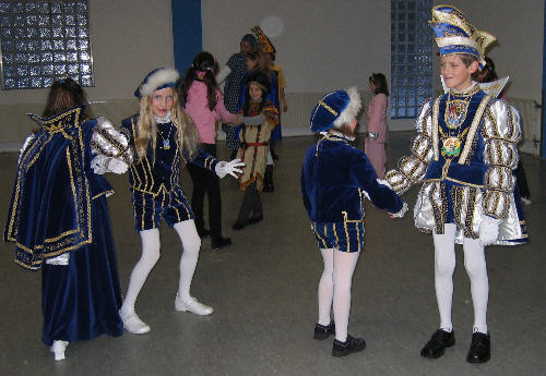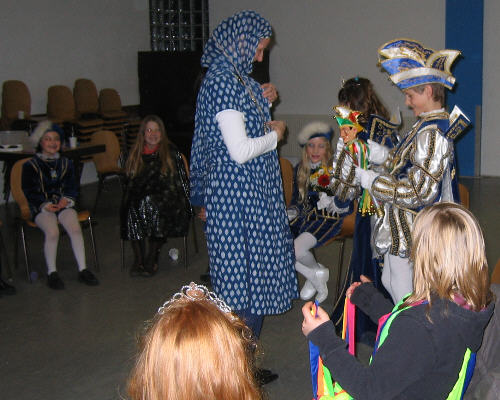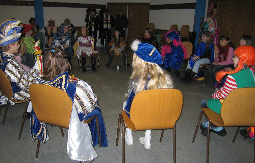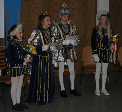 Eine Woche vor Rosenmontag kam das Kinderprinzenpaar zu den KELLIES. Es hatte über Nacht viel geschneit, die Wege waren noch nicht alle frei, so war der Kinderchor nicht vollzählig. |