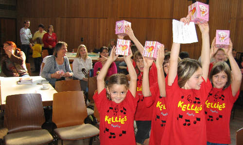 Die Kellies, Eltern, Ellen Steineck, Gabi Litta und Petra Moosmann-Brändli lauschen den anderen Kinderchören und erwarten den Auftritt der Kellies. |