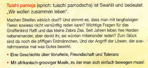 Im Musical treten die Kinder als Tiere Afrikas auf. Die Geschichte handelt von der Überwindung von Vorurteilen, von Freundschaft und Toleranz mit afrikanisch-grooviger Musik.